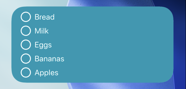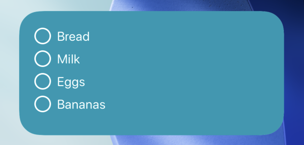 For an app I’m working on, I needed to solve a deceptively tricky problem: how many list items can I show in a widget without clipping? The app lets users create lists - shopping, to-do, Christmas, you name it. I added a widget so they could track their current list and even tick off an item or two without opening the app. Since this is user-generated content, I control neither the number of items nor how long each one is. A shopping list might have many single-word items whilst a to-do list can have longer entries, sometimes spanning multiple lines.